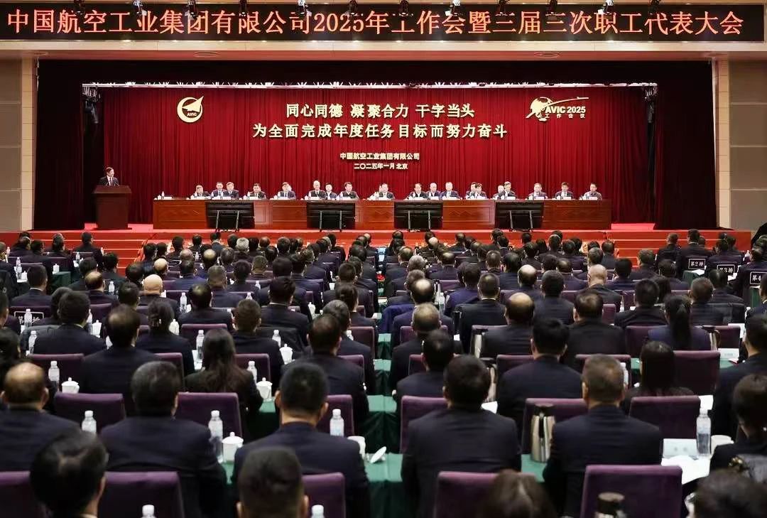 1月15日,中航工业在北京召开2025年工作会暨第三届职工代表大会第三次会议。会议以习近平新时代中国特色社会主义思想为指导,全面贯彻党的二十大和二十届二中、三中全会精神,深入落实中央经济工作会议、中央企业负责人会议和国防科技工业工作会议精神,全面总结2024年工作,研判新形势,部署2025年任务。中国工程院院士张彦仲,以及来自中央组织部、工业和信息化部、财政部、中国民用航空局、国家审计署等单位的领导出席会议。中航工业党组书记、董事长周新民出席会议并为有关企业、团队负责人颁发2025年度经营责任书;党组副书记李清堂主持会议,纪检监察组组长、党组成员任玉琨,党组成员、总会计师王惠芳出席会议。