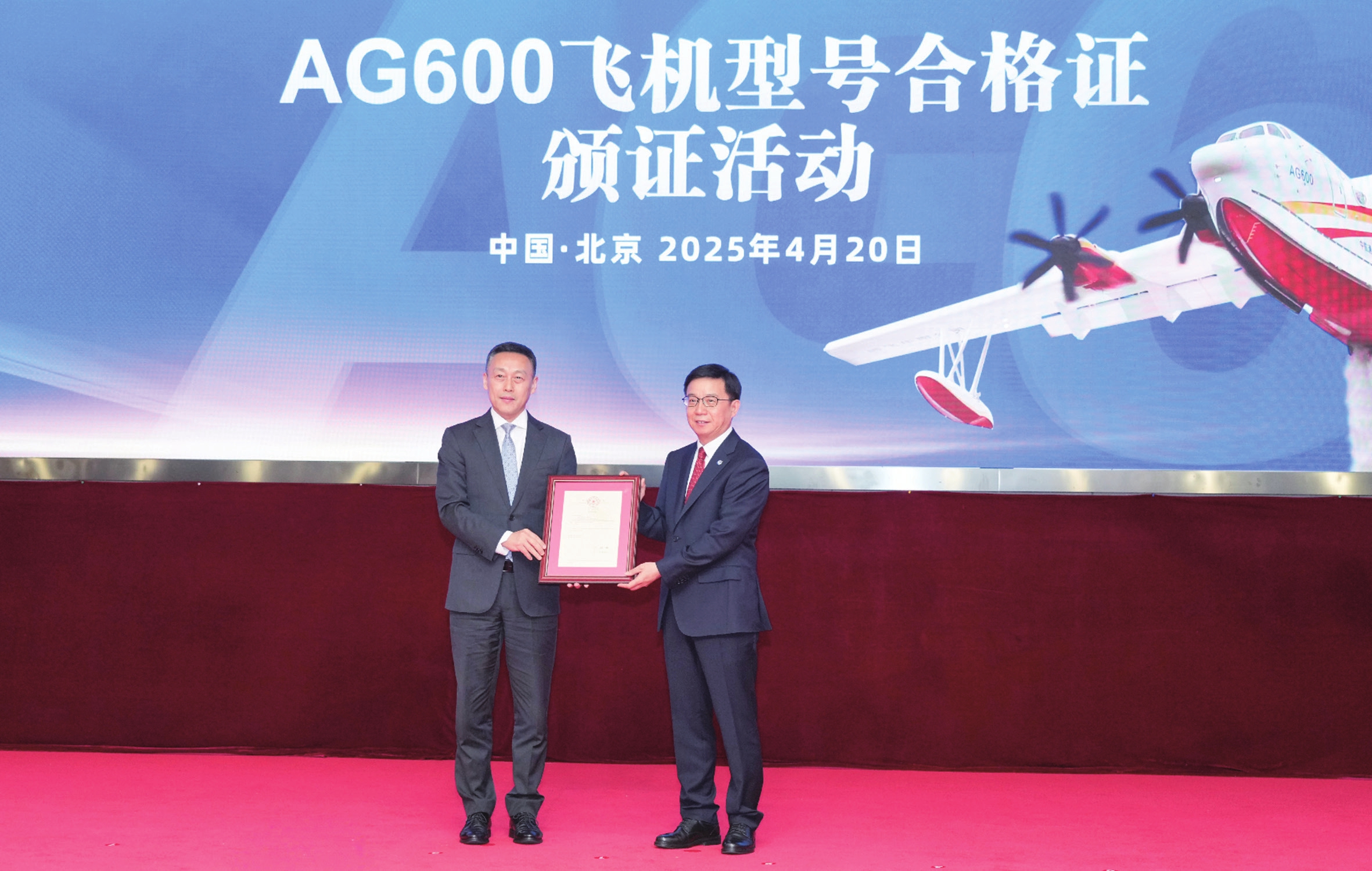 今天,AG600飞机圆满取得型号合格证,这不仅是审定历程的收官之战,更是中国大型特种飞机迈向历史新纪元的重要时刻。回望来路,2017年12月24日,在珠海实现陆上首飞,迈出国产大飞机“水陆两栖”的第一步。2018年10月20日,在湖北荆门完成水上首飞,习近平总书记发来贺电,为研制全线注入了澎湃的奋进力量。2020年7月26日,于青岛附近海域成功实现海上首飞。2023年6月,具备执行灭火任务能力。2024年7月,获得首个型号检查核准书。2025年2月,全面完成审定试飞。历经十五载攻坚克难,如今终向祖国和人民交出满怀喜悦与激情的海天答卷。